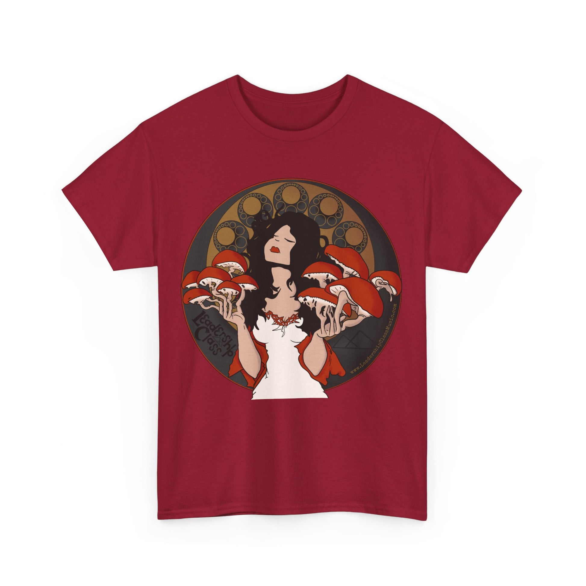 Crafted for comfort and style, each shirt is a canvas showcasing the band's iconic aesthetic. The 'Mushroom Lady,' as fans affectionately know her, becomes one with the music, her fingers blossoming into vibrant toadstools that seem to dance to an unseen melody. It's more than a piece of merchandise; it's wearable art that resonates with the soulful rhythms and the alternative vibe of Leadership Class.